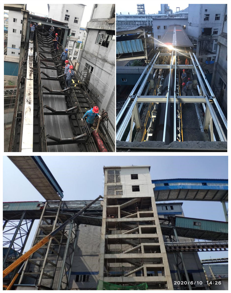 至新區7、8號焦爐輸煤生產線是焦化筒倉一期一步工程施工難度最大的一條生產線,新建3個轉運站、2條皮帶通廊、改造1條皮帶通廊,全長400多米。皮帶通廊即有半地下鋼筋混凝土結構也有架空鋼結構,架空部分緊靠鐵路及高落差護坡,與生產嚴重交叉,組織施工及吊裝難度極大。項目部各專業人員積極配合,協調各施工單位,分段作業,由于組織得力,各專業銜接緊密、配合緊張有序,土建積極給鋼結構、鋼結構積極為機裝、機裝積極為電裝及后工序創造條件,特別是最后三天,鋼結構收尾、支架及皮帶安裝、單機調試、設備運行調整、舊皮帶通廊改造、新舊系統聯動控制調試、照明報警及語音系統安裝調試,時間緊任務重施工難責任大,現場各類施工人員多,項目部人員靠現場,緊抓安全,積極協調,最終克服了各種困難,最終超額提前圓滿完成任務。
