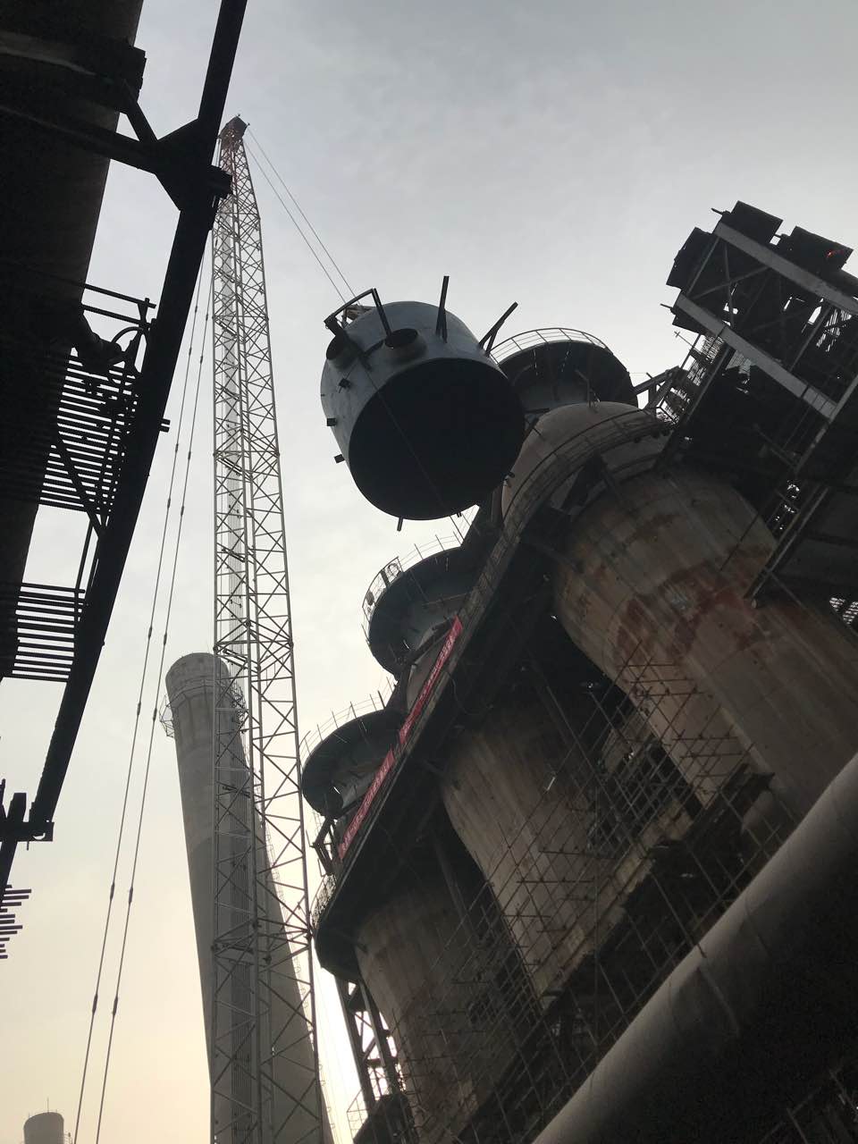 安陽沙鋼永興3#、4#580立方米高爐熱風爐大修工程于11月15日正式開工,到今天共計14天的時間,先后完成了老熱風爐系統的拆除及熱風爐新建,完成耐材拆50%,鋼結構拆除完成,設備拆除完成,自動化系統拆除完成,新建爐殼已封頂兩座。